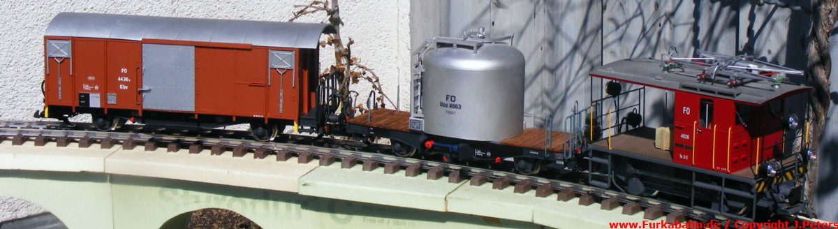 Mit Unterstüzung durch CB-Design in Visp konnte als Highlight unter den FO-Güterwagen auch der Velo Wagen Aletsch Gbv 4435 ins Modell umgesetzt werden. |